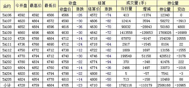 主力TA109合約當(dāng)日交易走勢