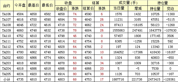 主力TA109合約當(dāng)日交易走勢(shì)