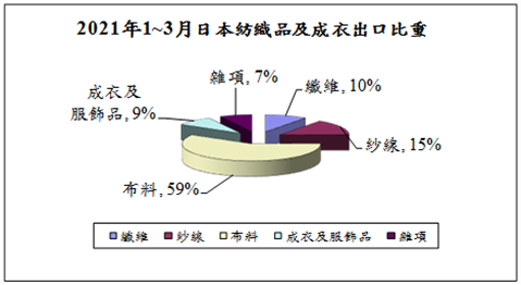 圖一 2021年1-3月日本紡織品及成衣出口比重