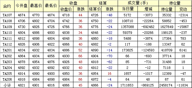 主力TA109合約當(dāng)日交易走勢