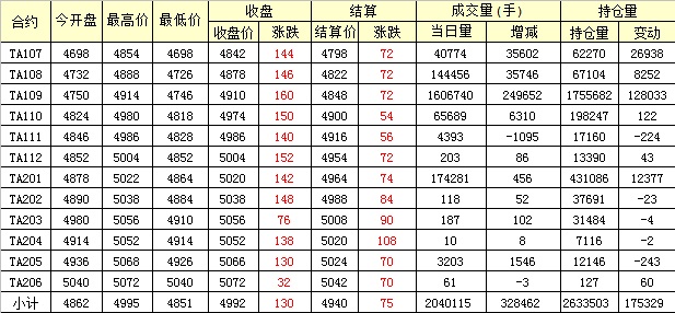 主力TA109合約當(dāng)日交易走勢(shì)
