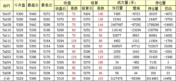 主力TA109合約當(dāng)日交易走勢(shì)