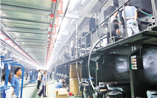 機(jī)械臂上下翻飛,將一卷卷化纖絲送上流水線;數(shù)百米的機(jī)械整齊地排列兩側(cè),工作人員只需簡(jiǎn)單操作按鈕……車間內(nèi)到處散發(fā)著智能化的氣息。7月27日,位于馬鞍街道的紹興柯橋恒鳴化纖有限公司投資60.5億元、年產(chǎn)60萬噸功能性纖維的智能生產(chǎn)線項(xiàng)目部分正式投產(chǎn)。該項(xiàng)目由年產(chǎn)30萬噸FDY纖維和年產(chǎn)30萬噸POY纖維組成,其中27日投產(chǎn)的是年產(chǎn)30萬噸FDY纖維。該項(xiàng)目投產(chǎn)后,不僅可為公司減少人工,還能進(jìn)一步提升效率,提高產(chǎn)品品質(zhì),助力公司走差異化發(fā)展道路。未來隨著該項(xiàng)目全部投產(chǎn),及前期已投產(chǎn)的80萬噸年產(chǎn)能,整個(gè)公司年產(chǎn)能將達(dá)140萬噸。