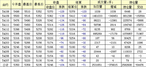 主力TA109合約當(dāng)日交易走勢