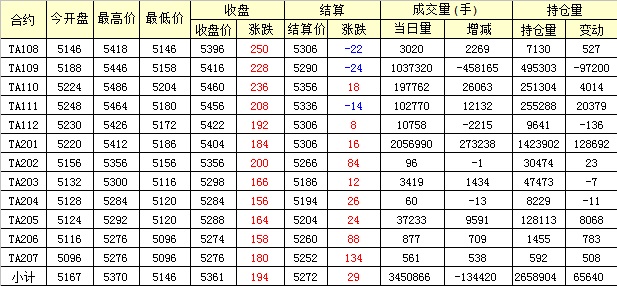 主力TA109合約當(dāng)日交易走勢(shì)