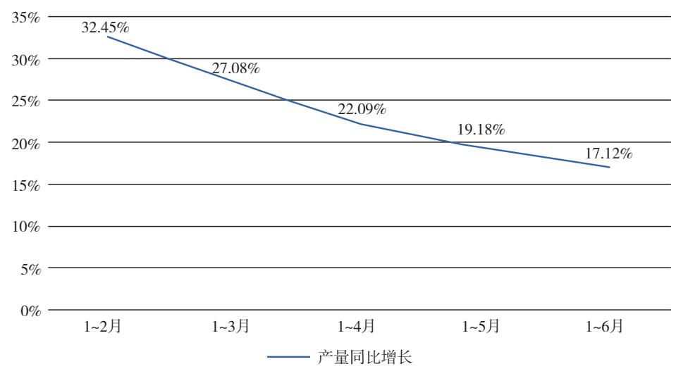 分月度看,隨著去年春節(jié)后行業(yè)復(fù)工復(fù)產(chǎn)的快速推進(jìn),化纖產(chǎn)量基數(shù)快速提高,導(dǎo)致今年1-6月的產(chǎn)量同比增速逐月回落(圖1)。