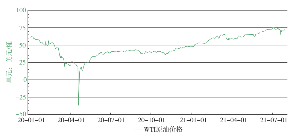 圖2 2020-2021年WTI油價走勢