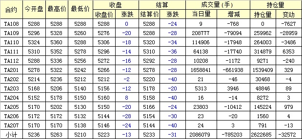 主力TA109合約當(dāng)日交易走勢