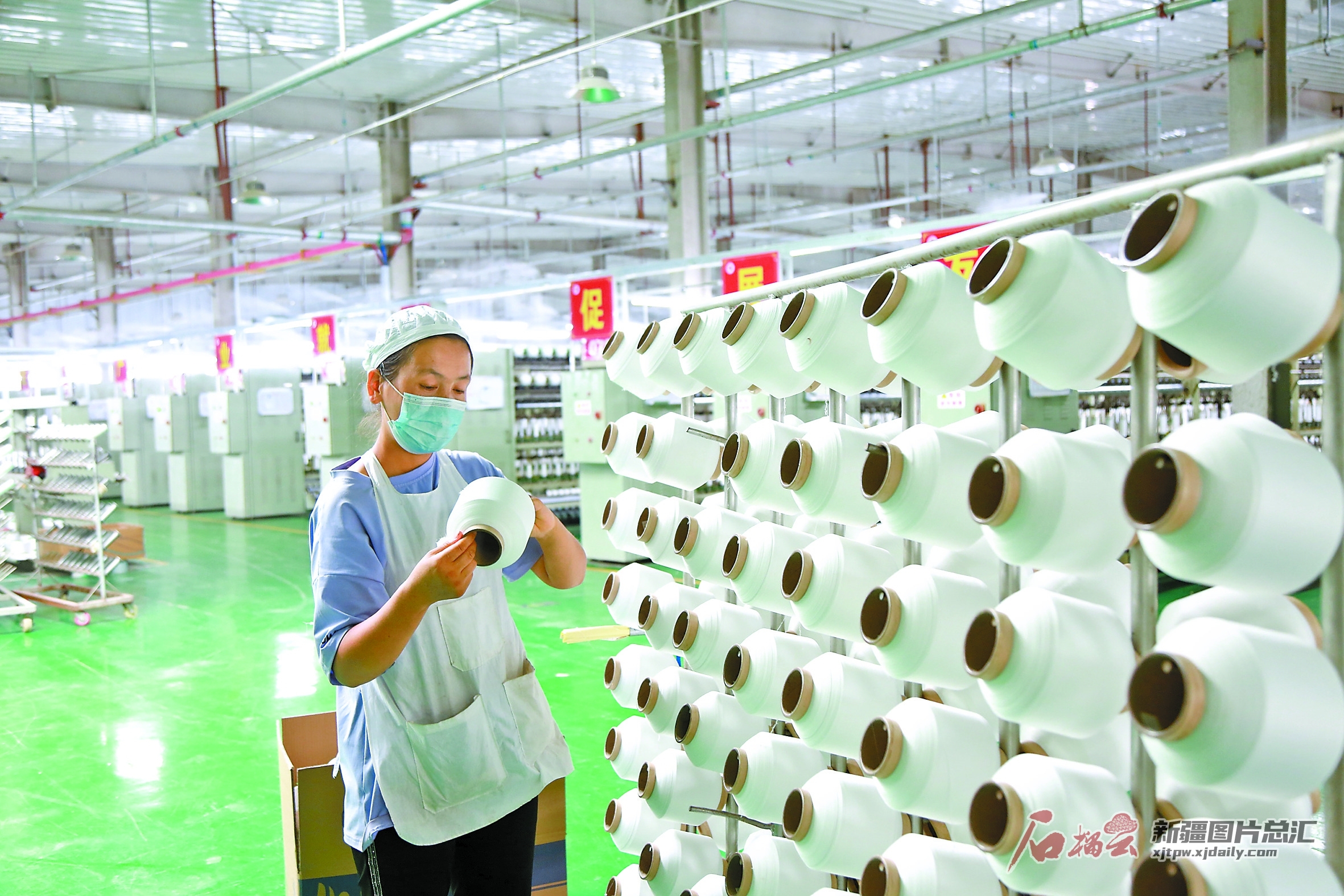 8月14日,員工在紡紗車間作業(yè)。眼下,位于阿瓦提縣工業(yè)園區(qū)的寶隆紡織科技有限公司正開足馬力加緊生產,確保600噸紡紗訂單任務按時完成。