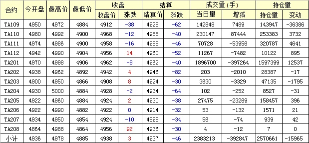 主力TA201合約當(dāng)日交易走勢