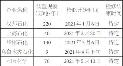 表為今年年內(nèi)新增長(zhǎng)期停車或停車后暫無重啟時(shí)間的裝置