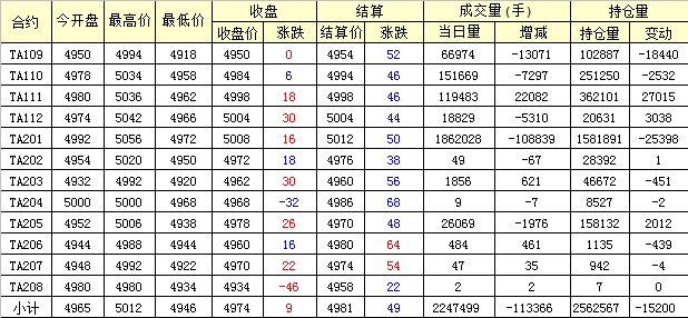 主力TA201合約當(dāng)日交易走勢(shì)