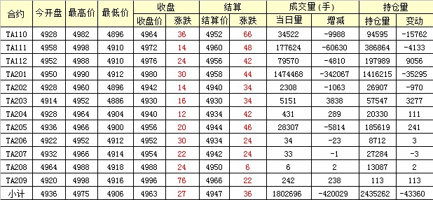 主力TA201合約當(dāng)日交易走勢(shì)