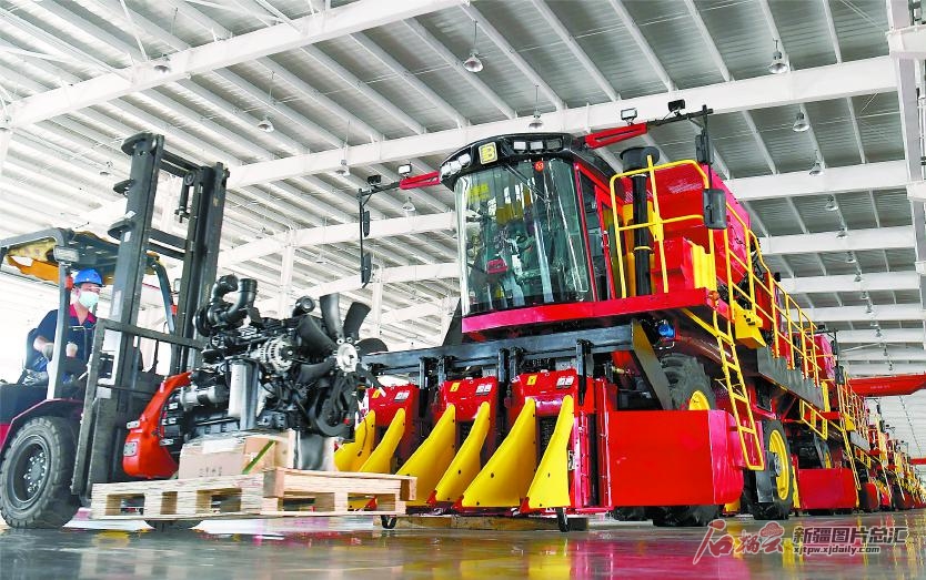9月12日,工人在新疆缽施然智能農(nóng)機股份有限公司生產(chǎn)車間調(diào)試采棉機。隨著棉花收獲季的到來,該公司迎來銷售旺季,今年已生產(chǎn)采棉機400臺,銷售350臺。