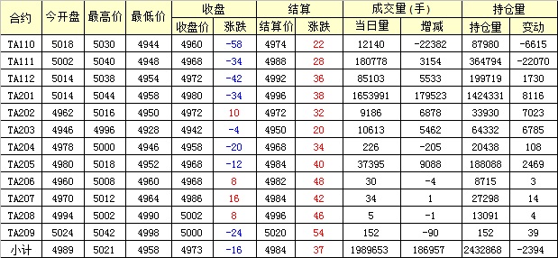 主力TA201合約當(dāng)日交易走勢(shì)