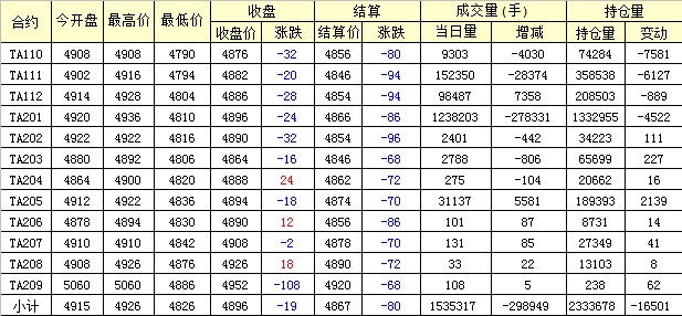 主力TA201合約當(dāng)日交易走勢