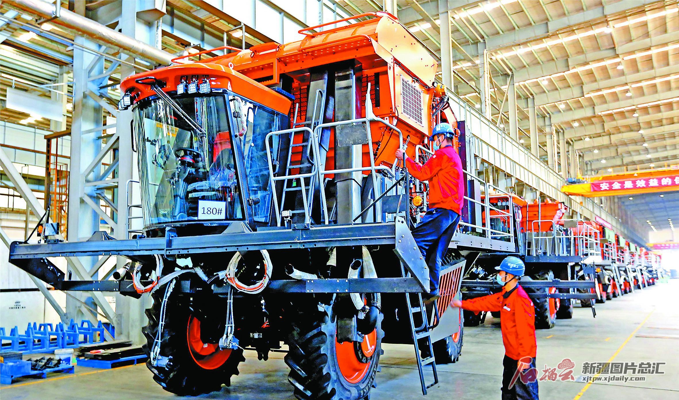 9月23日,工人在生產(chǎn)車間組裝高端智能六行采棉機(jī)。眼下正值采棉季,位于烏魯木齊經(jīng)濟(jì)技術(shù)開發(fā)區(qū)(頭屯河區(qū))的鐵建重工新疆有限公司加緊生產(chǎn)高端智能六行采棉機(jī)和采棉打包一體機(jī),保障市場供應(yīng)。
