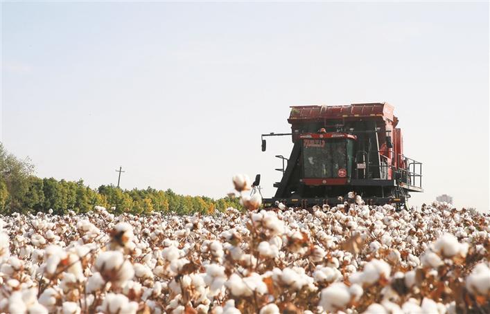 10月6日,一臺采棉機正在棉田里采收新棉。今年,十三師積極引導職工種植優(yōu)質、早熟棉花新品種,做好脫葉劑噴施、采棉機檢修等準備工作,為棉花豐產(chǎn)、棉農(nóng)增收奠定堅實基礎。目前,該師21萬余畝棉田全面進入采收期。