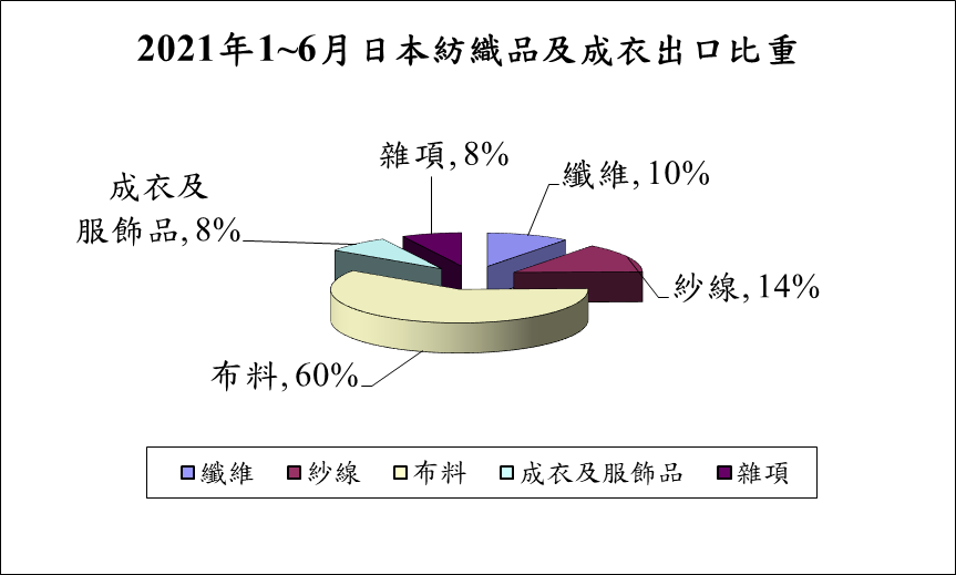 圖一 2021年1-6月日本紡織品及成衣出口比重