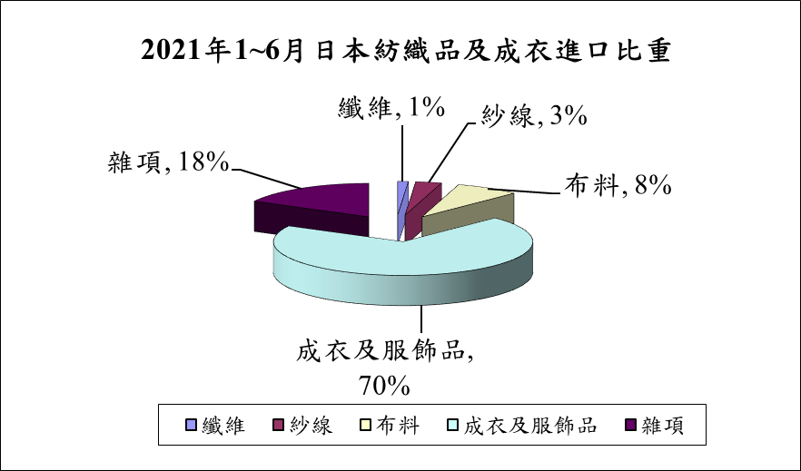 圖二 2021年1-6月日本紡織品及成衣進口比重
