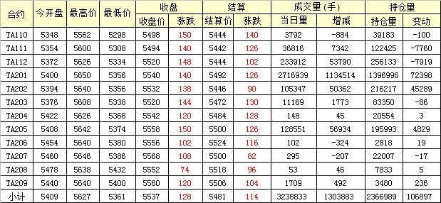 主力TA201合約當(dāng)日交易走勢