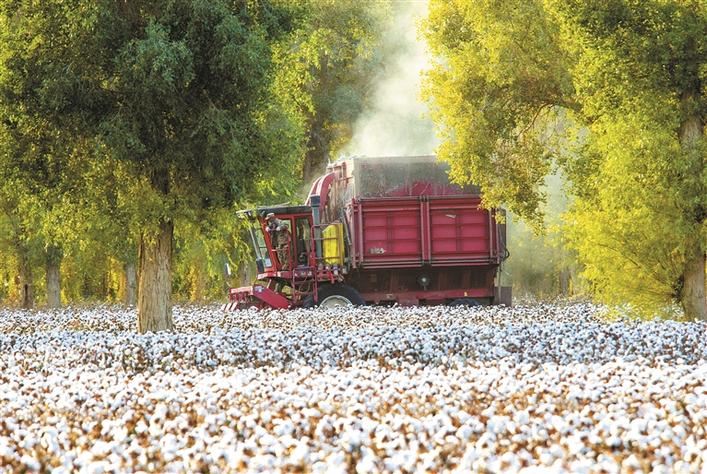 10月17日,二師三十三團一片棉田里,采棉機忙碌作業(yè),采收新棉。今年二師塔里木墾區(qū)共種植棉花75萬畝,全部機械化采收,極大減少人工成本,實現職工增收、農業(yè)增效。