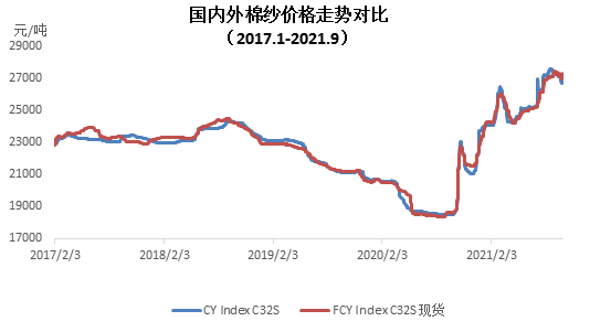 二、內(nèi)外棉紗價格有所分化