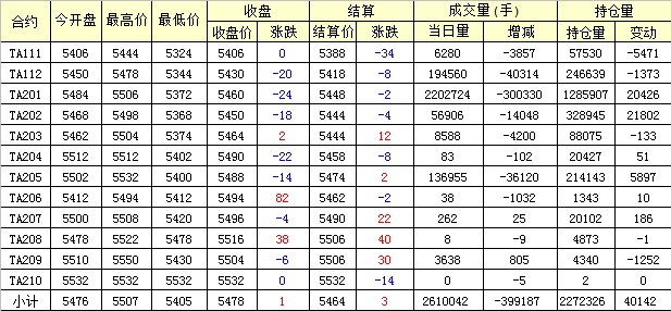 主力TA201合約當(dāng)日交易走勢(shì)