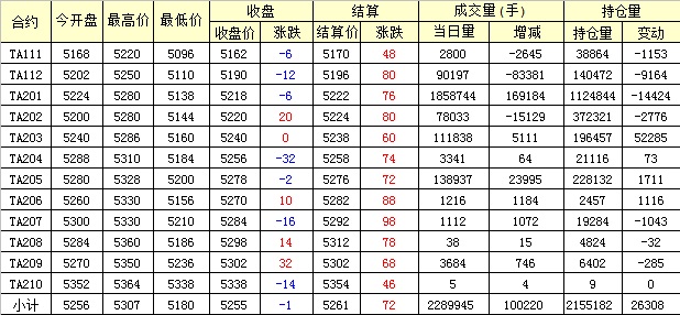 主力TA201合約當(dāng)日交易走勢(shì)