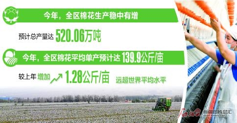 今年全區(qū)棉花生產(chǎn)穩(wěn)中有增,預(yù)計(jì)產(chǎn)量比上年同期增長(zhǎng)3.1%,全區(qū)棉花顏色級(jí)、纖維長(zhǎng)度、斷裂比強(qiáng)度等品質(zhì)指標(biāo)也同比實(shí)現(xiàn)較大幅提升,棉花質(zhì)量明顯好于上年,生產(chǎn)效益持續(xù)提升。