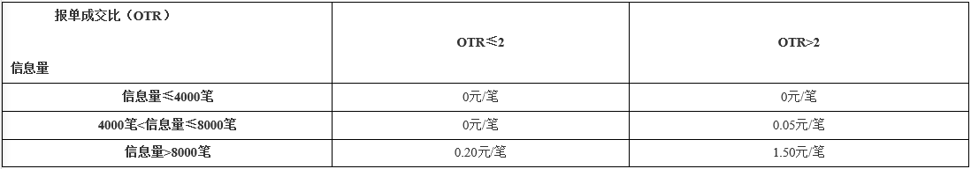 其中,信息量=報單、撤單等交易指令筆數之和;報單成交比(OTR)=(信息量/有成交的定單筆數)-1。
