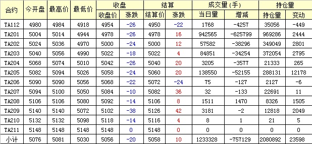 主力TA201合約當(dāng)日交易走勢(shì)