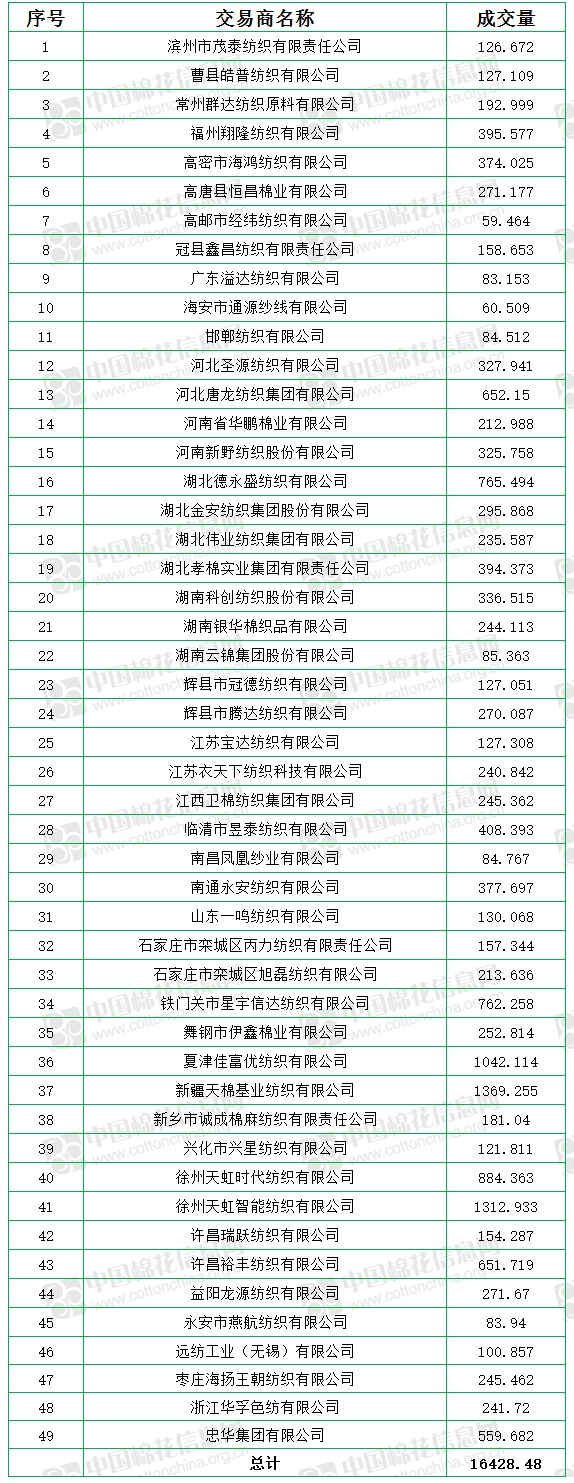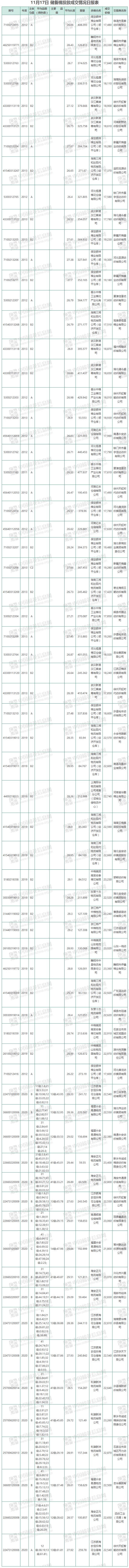 10月8日至11月17日累計成交總量470576.494噸,成交率61.38%。