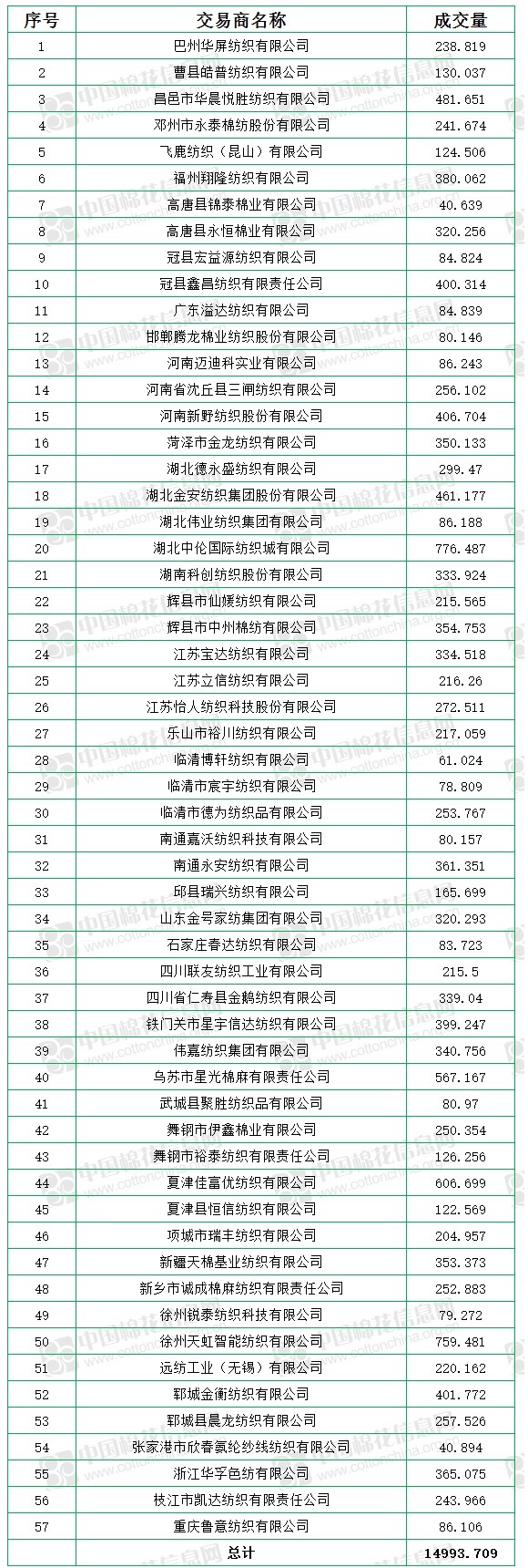 10月8日至11月18日累計(jì)成交總量485570.203噸,成交率61.72%。