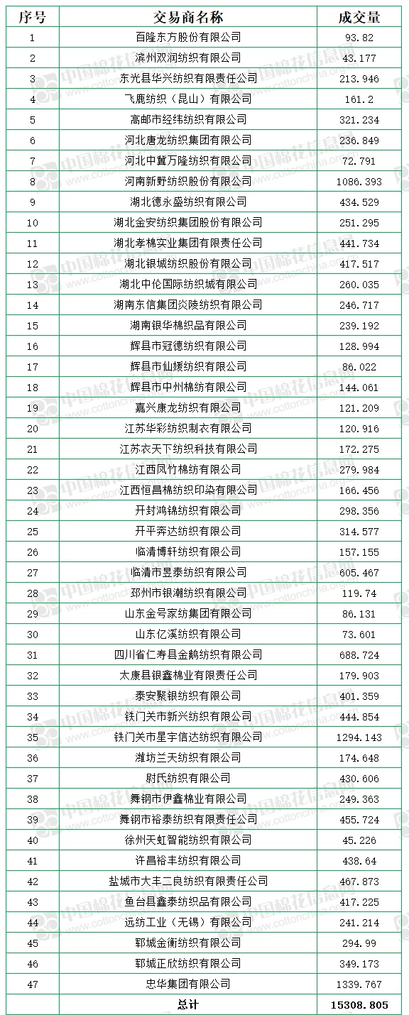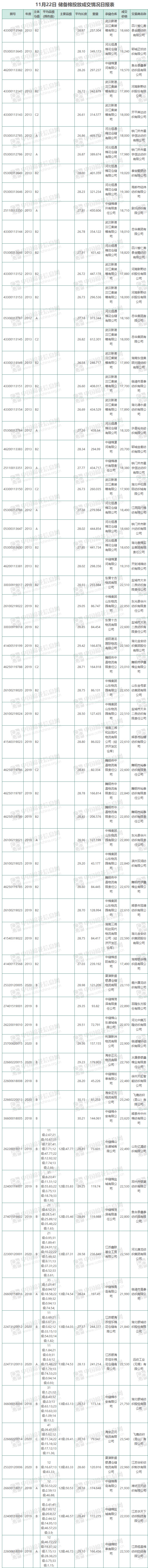 10月8日至11月22日累計(jì)成交總量517607.817噸,成交率62.61%。