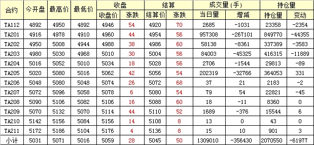 主力TA201合約當(dāng)日交易走勢(shì)