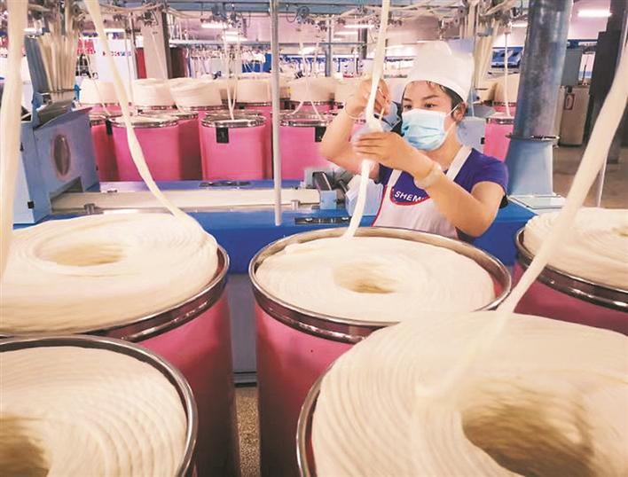 11月28日,七師胡楊河市招商引資企業(yè)新疆仁和紡織科技有限公司生產(chǎn)車間內(nèi),工人正在作業(yè)。得益于日益優(yōu)化的營商環(huán)境,該公司今年實(shí)現(xiàn)快速發(fā)展。今年,七師胡楊河市持續(xù)優(yōu)化營商環(huán)境,提升招商引資實(shí)效,截至目前,共簽約招商引資項(xiàng)目180個,總投資610.3億元。
