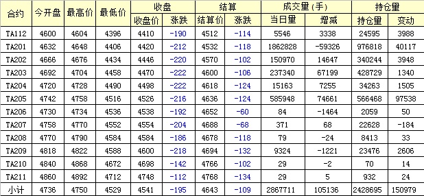 主力TA201合約當(dāng)日交易走勢(shì)
