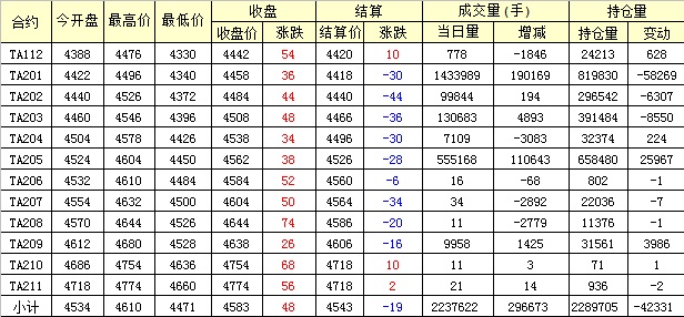 主力TA201合約當(dāng)日交易走勢(shì)