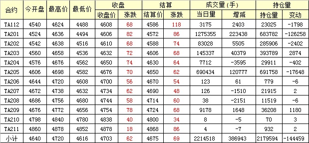 主力TA201合約當(dāng)日交易走勢