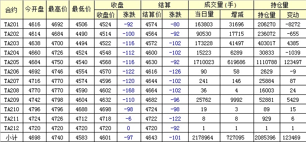 主力TA205合約當(dāng)日交易走勢(shì)