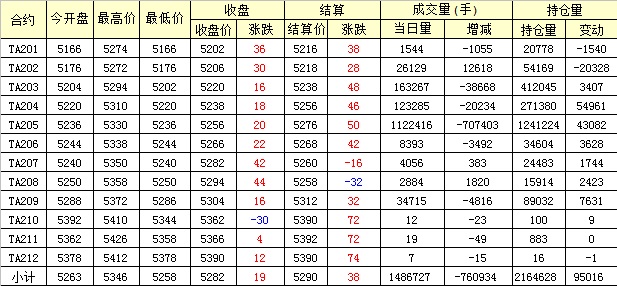 主力TA205合約當(dāng)日交易走勢(shì)