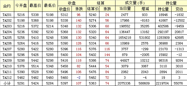 主力TA205合約當(dāng)日交易走勢(shì)