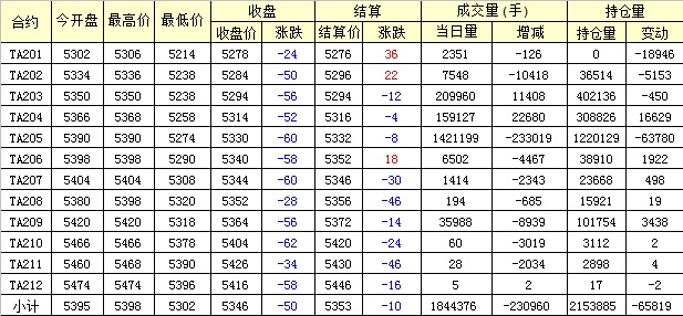 主力TA205合約當日交易走勢