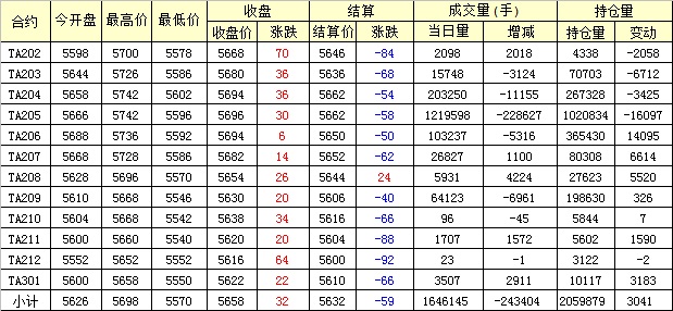 主力TA205合約當(dāng)日交易走勢(shì)