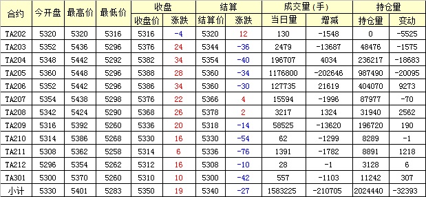 主力TA205合約當(dāng)日交易走勢(shì)