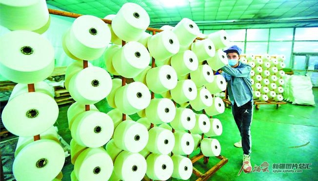 2月21日,員工在位于庫車經(jīng)濟(jì)技術(shù)開發(fā)區(qū)的新疆協(xié)益紡織科技有限公司生產(chǎn)車間作業(yè)。目前,庫車市各紡織企業(yè)開足馬力趕制訂單,力爭實(shí)現(xiàn)首季“開門紅”。