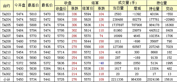 主力TA205合約當(dāng)日交易走勢