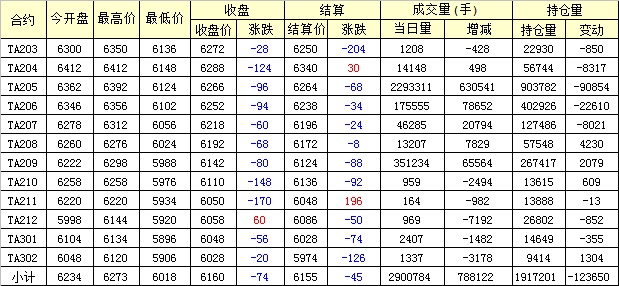 主力TA205合約當(dāng)日交易走勢