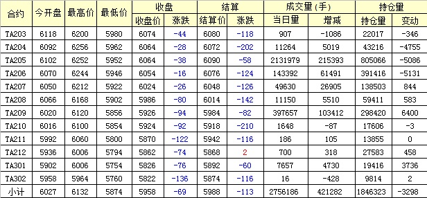 主力TA205合約當(dāng)日交易走勢(shì)